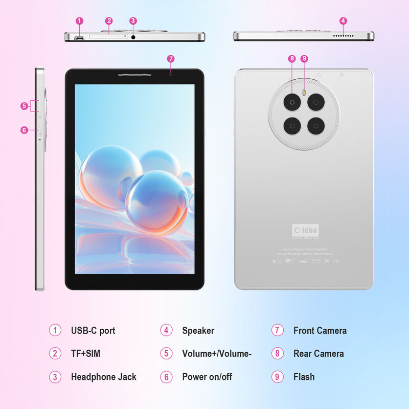 उत्पाद विवरण: पेश है सी आइडिया CM936, जिसे आपके डिजिटल अनुभव को नई ऊंचाइयों पर ले जाने के लिए डिज़ाइन किया गया है। शक्तिशाली स्नैपड्रैगन QT615 8*CortexTm-A53 4*1.7GHz+4*1.0GHz और 8GB DDR मेमोरी के साथ, यह टैबलेट आपके सभी कार्यों के लिए निर्बाध मल्टीटास्किंग और सुचारू प्रदर्शन सुनिश्चित करता है। 8-इंच IPS डिस्प्ले और ARM Mali-400 MP2 GPU के साथ, शानदार दृश्यों और इमर्सिव गेमिंग अनुभवों का आनंद लें। उदार 512GB EMMC स्टोरेज के साथ अपने सभी ऐप्स, फ़ोटो और मीडिया को आसानी से स्टोर करें, जिसे TF कार्ड स्लॉट के माध्यम से 512GB तक बढ़ाया जा सकता है। हाई-स्पीड वाई-फाई और वैकल्पिक 2G/3G/5G सपोर्ट के साथ चलते-फिरते जुड़े रहें, और 8MP रियर कैमरे से हर पल को कैप्चर करें। इसके अलावा, बिल्ट-इन GPS, ब्लूटूथ और FM रेडियो के साथ, CM936 आपको जहां भी ले जाए, बहुमुखी प्रतिभा और सुविधा प्रदान करता है। लंबे समय तक चलने वाली शक्ति के लिए 8000mAh बैटरी के साथ पूरा, CM817 AIR काम, मनोरंजन और बीच की हर चीज के लिए अंतिम साथी है।
